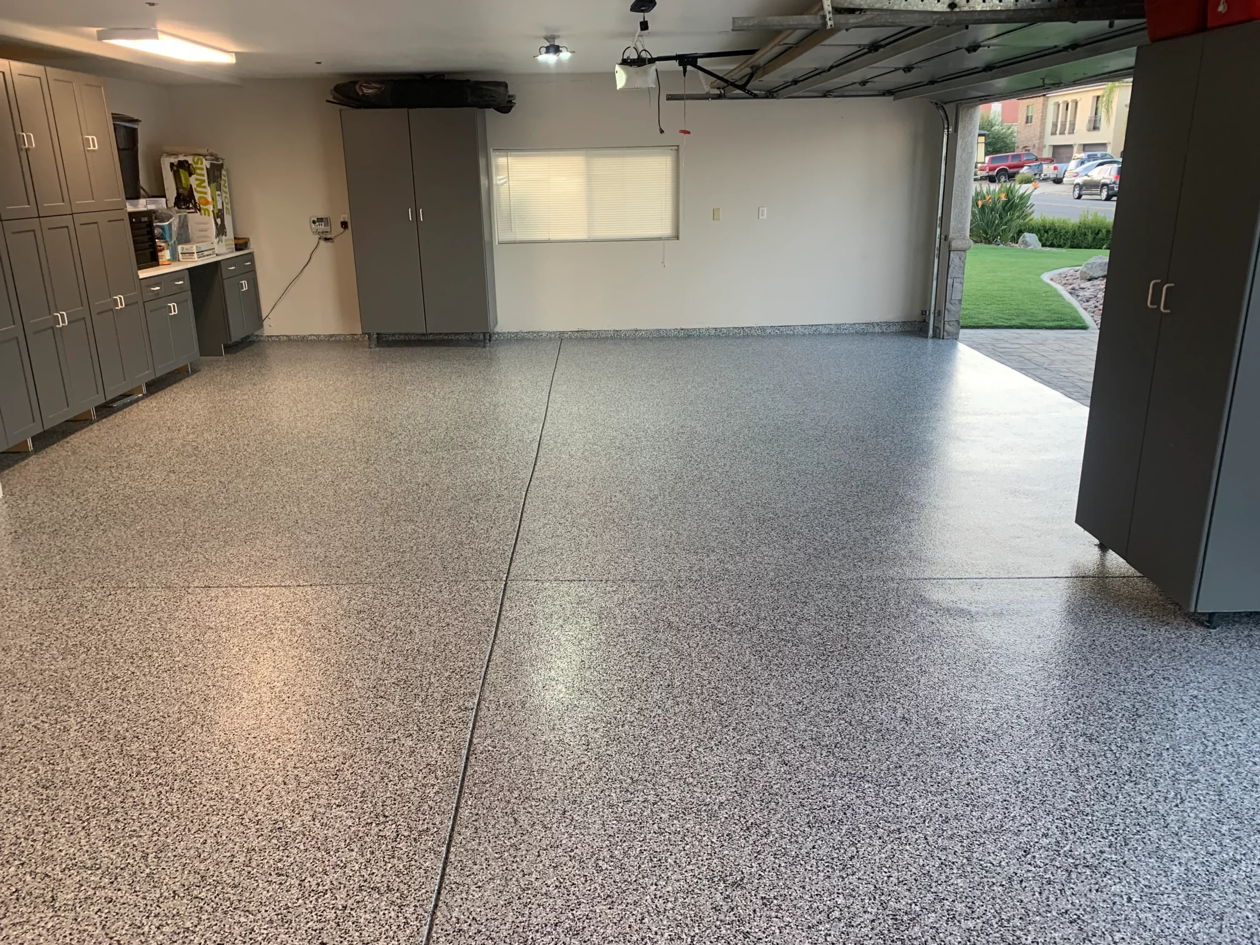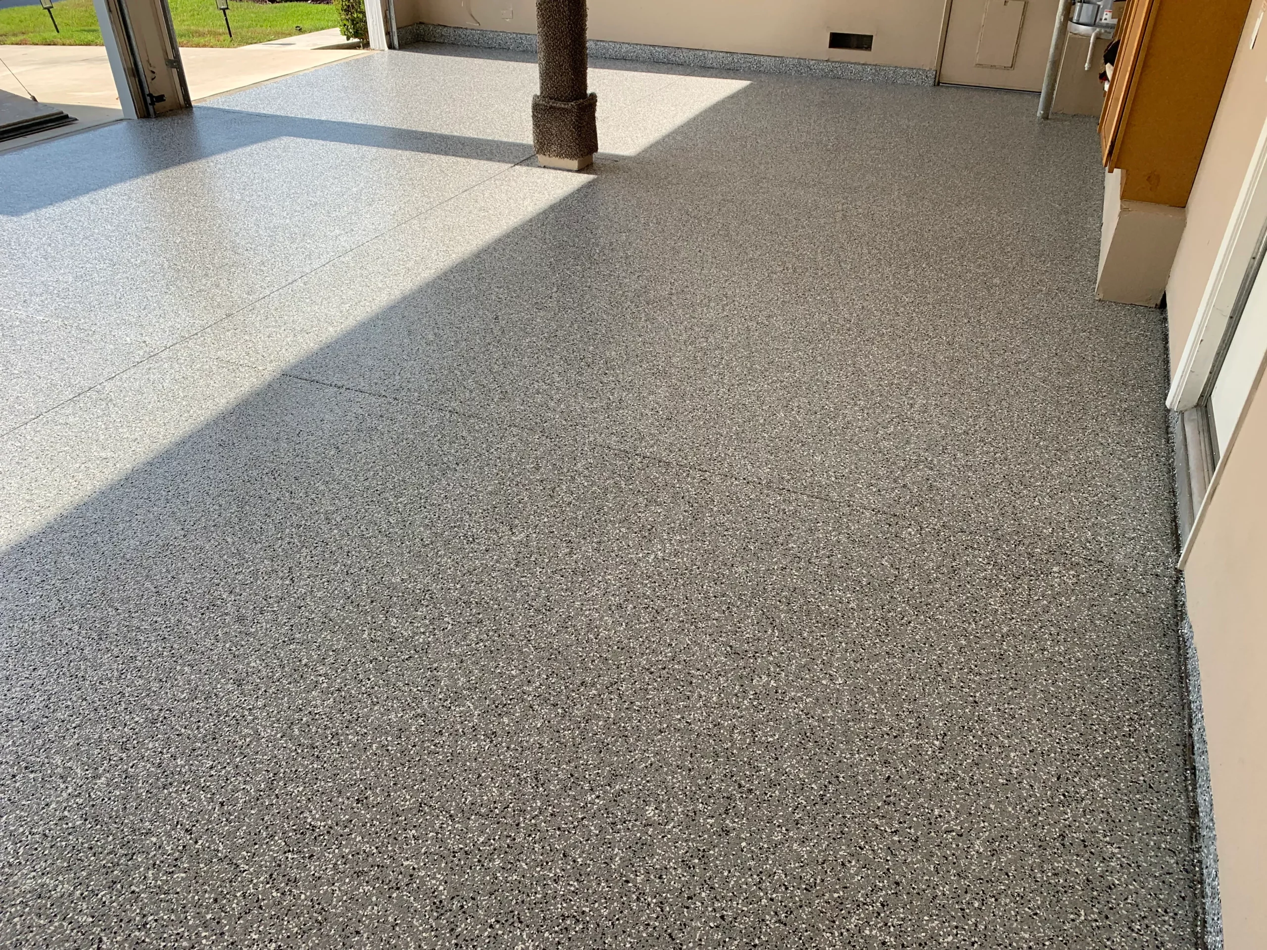 A beautifully finished garage floor adds a designer aspect to any residential or commercial property.